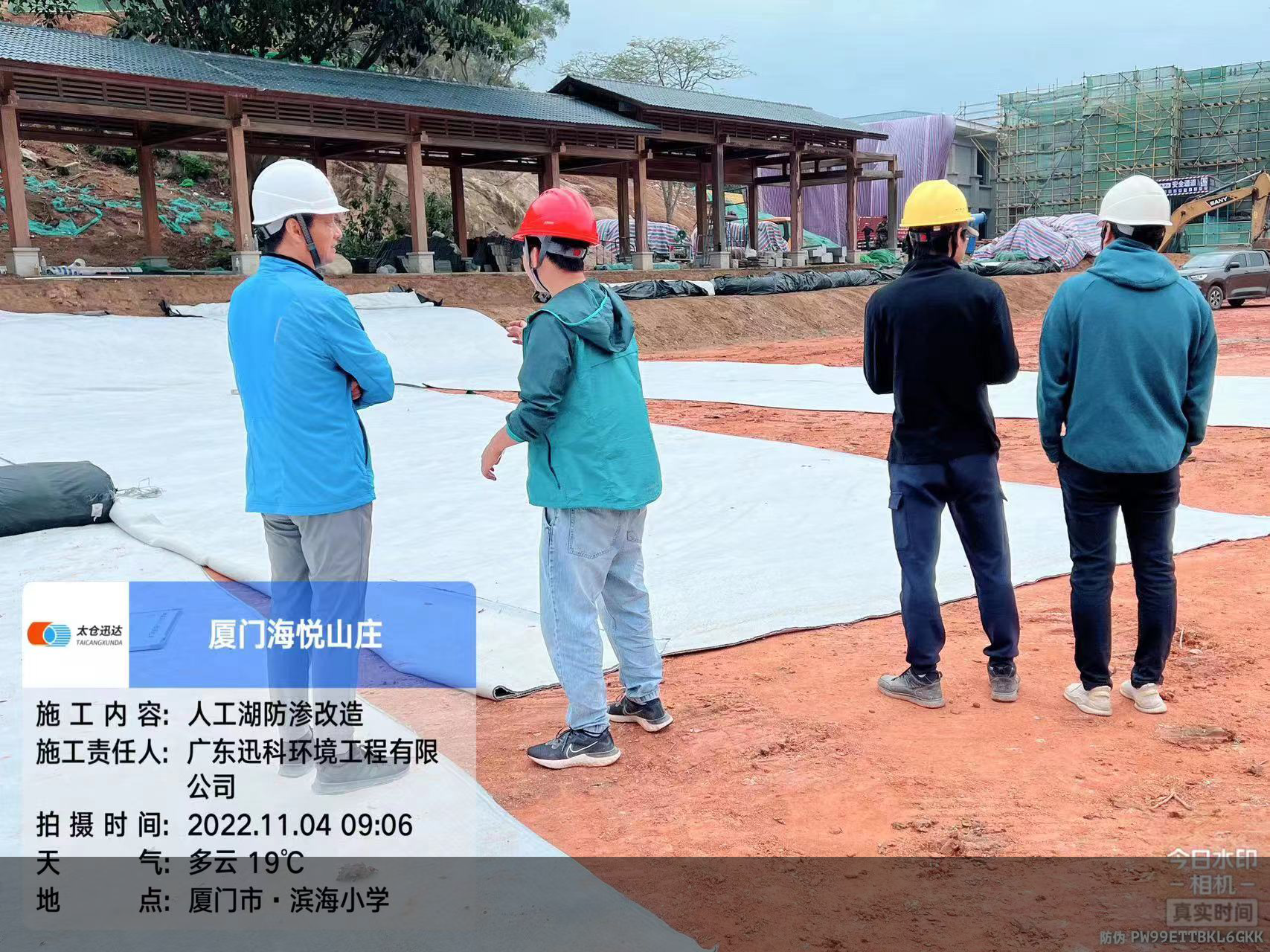 項(xiàng)目概況:項(xiàng)目位于珠海市金灣區(qū),人工湖水體防滲面積120000㎡,項(xiàng)目基礎(chǔ)為填海造陸形成,砂質(zhì)土嚴(yán)重且地下水有海水滲透,對防滲及抗鹽堿度要求非常高!